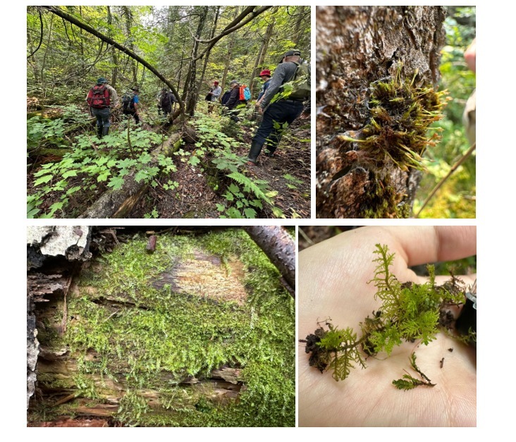 Field trip in the Quebec woods to sample liverworts and moss: