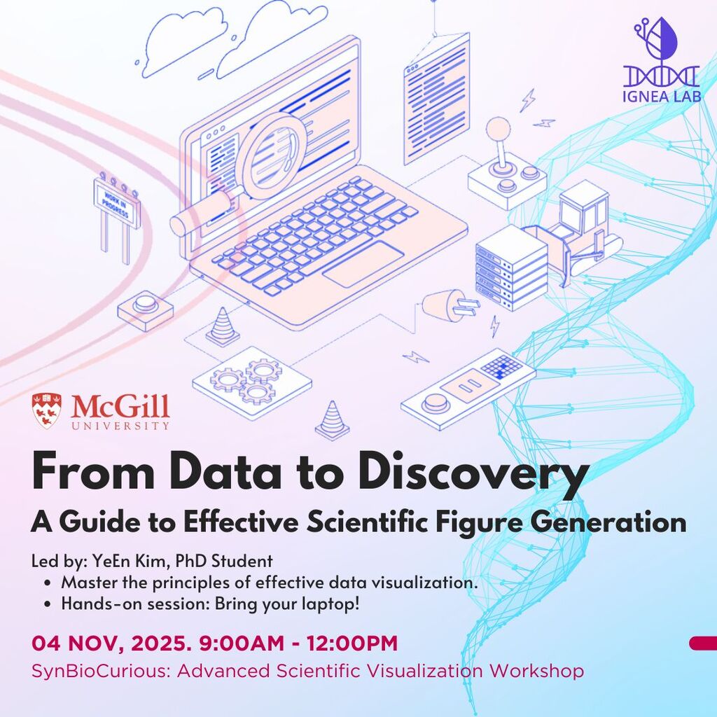 This is a series of advanced workshop taught by Ye En Kim on creating publication-quality figures for complex biological data. The curriculum provides hands-on training in graphing using a suite of essential software: Python (Matplotlib/Seaborn), R (ggplot2), and MATLAB for custom computational graphics and bioinformatics analysis; GraphPad Prism and JMP for robust statistical analysis and visualization; and BioRender for professional schematics. Sharing her expertise across these platforms, Ye En's peer-led initiative elevates the lab's communication standards and contributes to the training of highly qualified personnel (HQP).